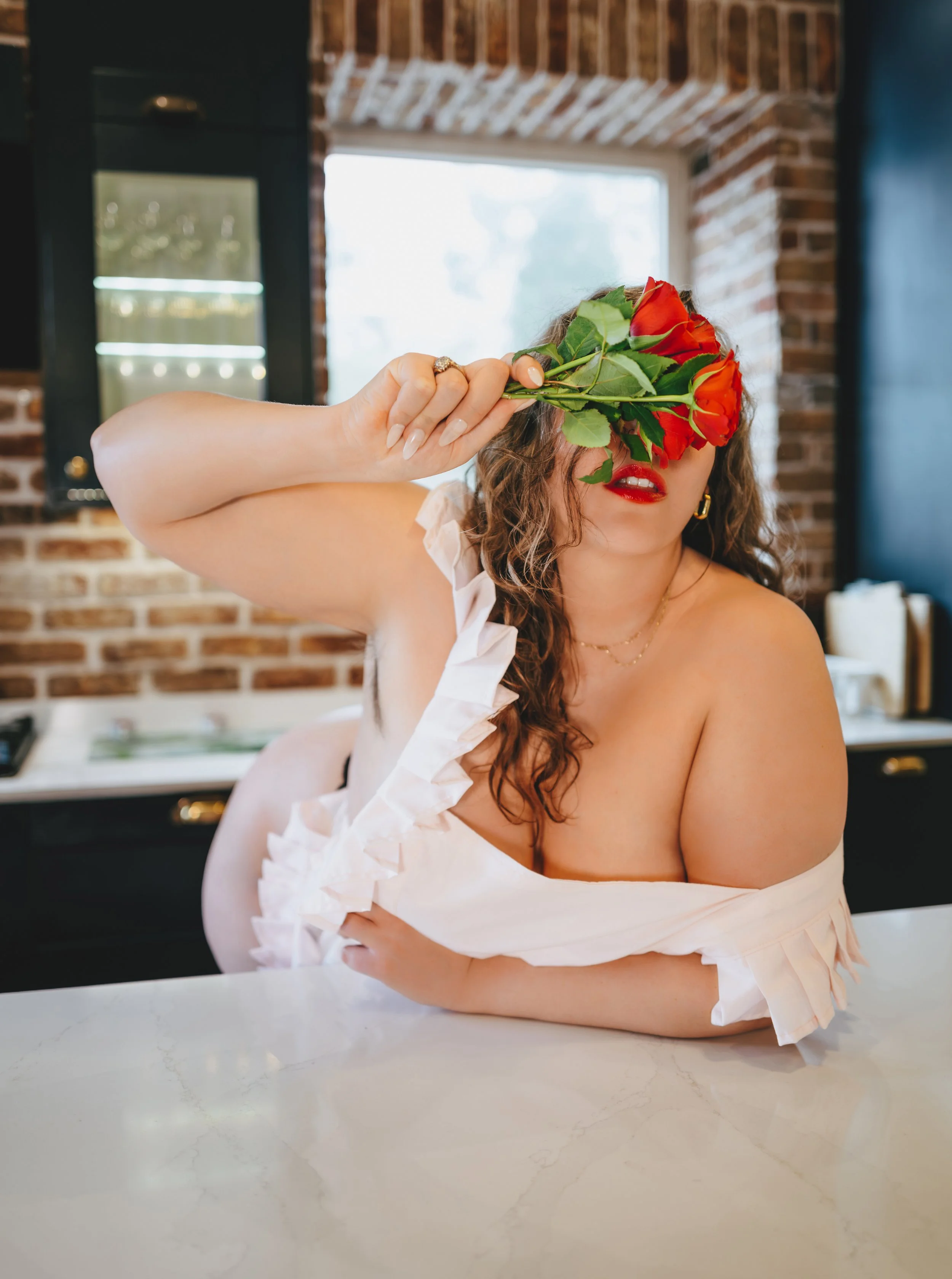 As she looked up, she saw Henri watching her at the door, almost frozen under a spell. He came closer and hovered his hands over her shoulders. He looked at her for approval and she bit her lip down and nodded. Once he saw and felt the mutual energy, his large, strong hands gently pulled her straps down to expose her breasts. He kissed her and laced his tongue over hers, kissing her chin and down her neck before turning her around and pushing her over the nearby butler’s sink. Pulling up her wet dress, he gasped at her tiny petite waist, her round, full bottom and the white, untanned line left from her thong bikini.